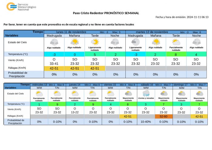 Nubosidad: Seminublado a nublado, sin precipitaciones, en el Valle de Uco, Gran Mendoza y sector oeste de la zona Este. Luego, al mediodía, comienza a despejarse.