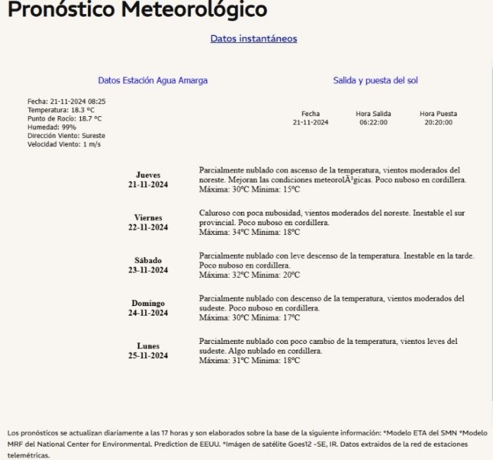A partir de las 14:00, circulación de viento Zonda leve afectando precordillera Sur y el Sur de Malargüe, hasta las 19:00, aproximadamente.