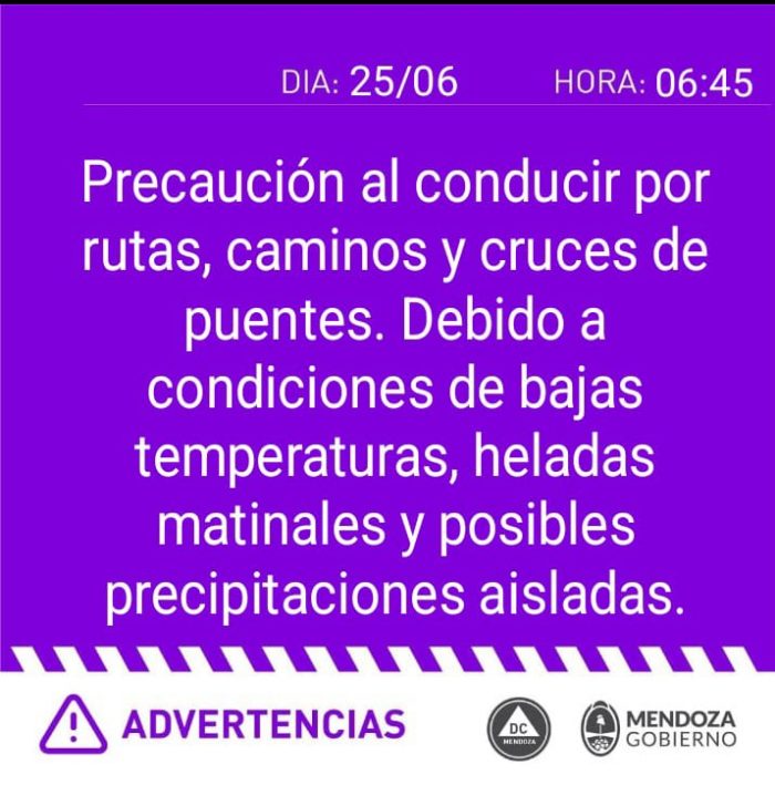 -Zona de Santa Clara, Gualtallary y La Carrera: continúa con nevadas. - TUNUYÁN: El Manzano, Los Árboles, La Pampa y San Pablo: caminos congelados. En el resto del departamento ya no nieva y sin viento.