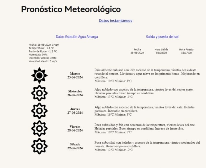 Relevamiento de la situación meteorológica, 25 de junio a las 6.30.