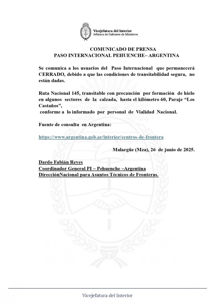 Paso Pehuenche: Cerrado.