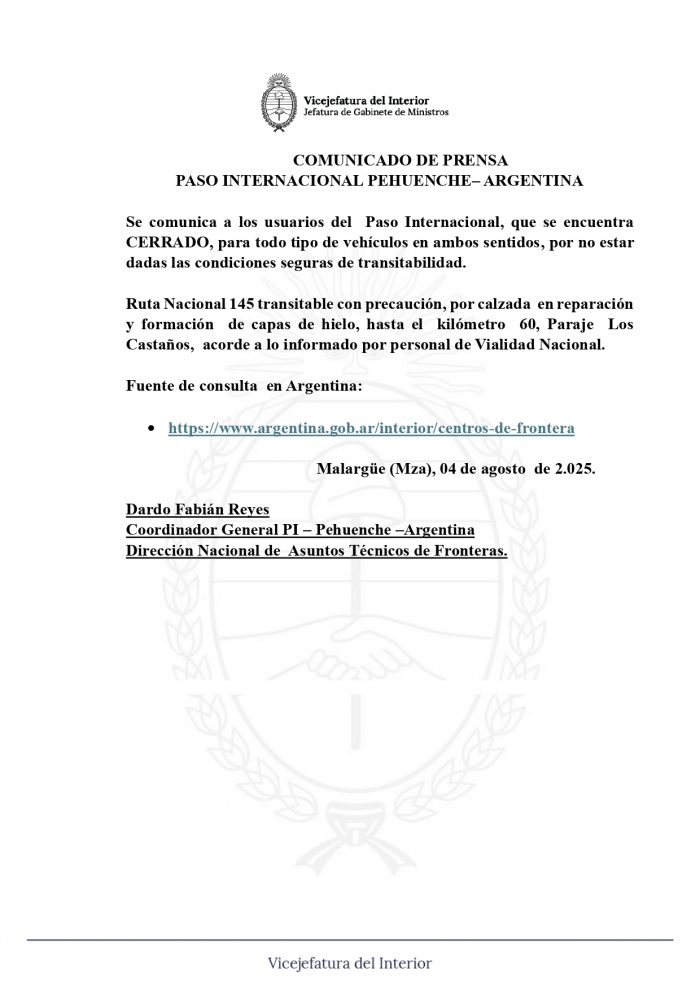 Paso Pehuenche: Cerrado.