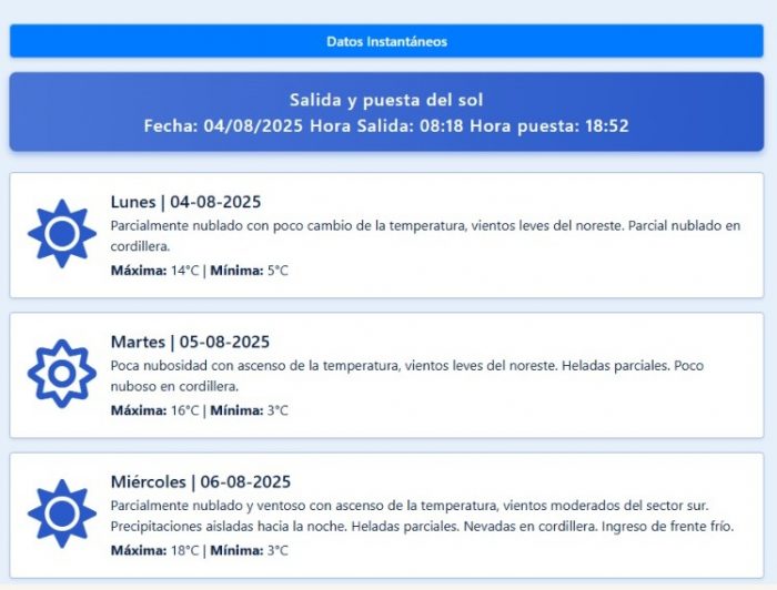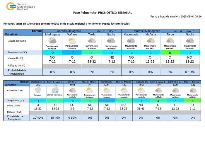 Pronóstico para hoy: Cielo seminublado, con poco cambio de la temperatura y viento de leve a moderado del sector sur, rotando al noreste.