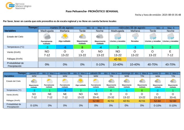 -Probabilidad de precipitaciones en Valle de Uco, zona Sur y Sur del Gran Mendoza