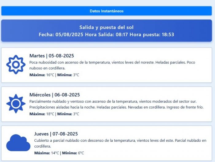 Mínima (Malargüe): -2°C.