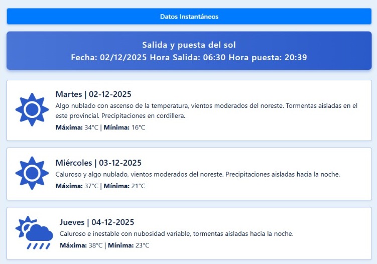 Viento: Circulación de viento norte leve desde primeras horas del amanecer se inicia en zona Este y se extiende al resto de la provincia. Se mantendría hasta aproximadamente las 20.