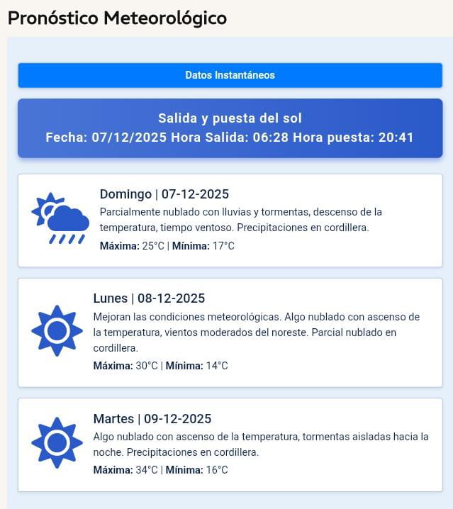 Alta Montaña: Cielo despejado durante la mañana; seminublado hacia la media tarde, con probables precipitaciones leves en el sector sur (frente a Malargüe) desde las 17.