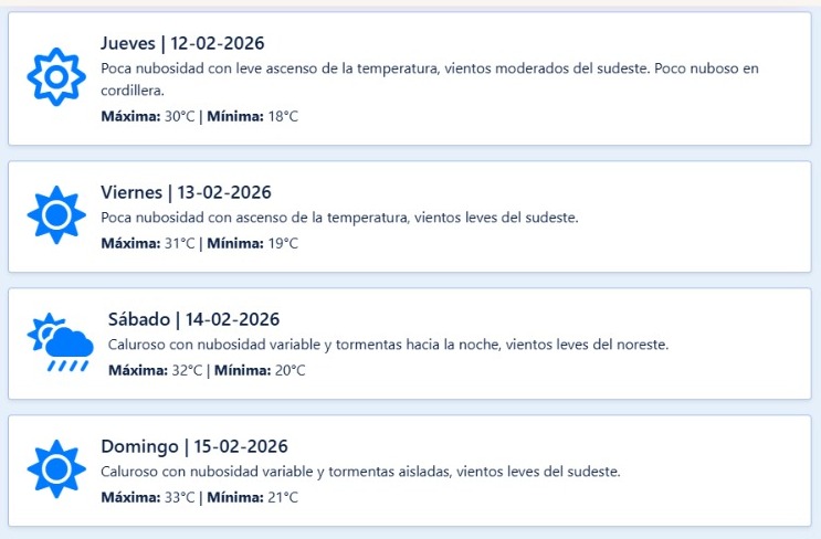 - Mínima: 16°C. (Malargüe y zonas bajas de Valle de Uco).