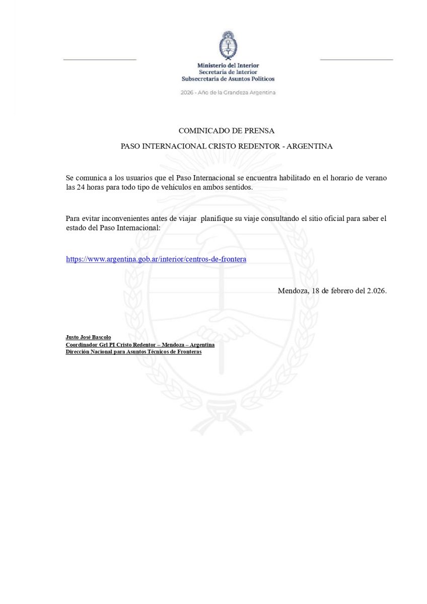 Paso Cristo Redentor: Habilitado las 24 horas para todo tipo de vehículos