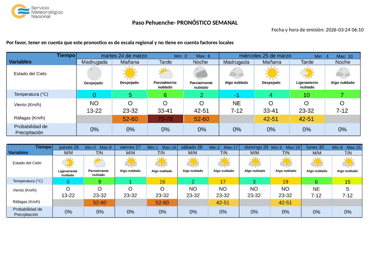 Viento: Circulación débil proveniente del norte, entre las 11 y las 21, comenzando en la zona Este y extendiéndose luego a toda la provincia.