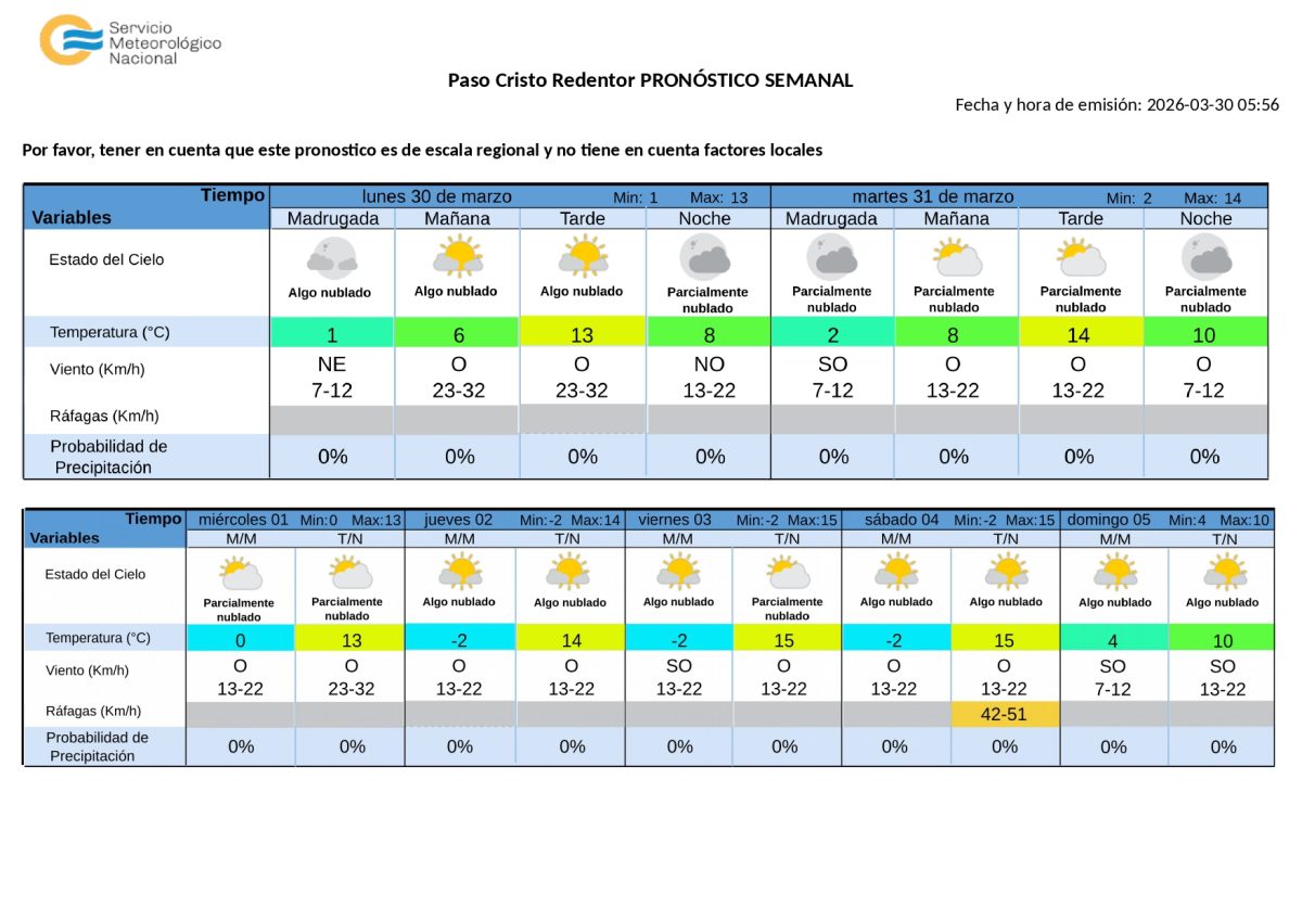 Paso Cristo Redentor: Habilitado para transporte de cargas, ómnibus y particulares.