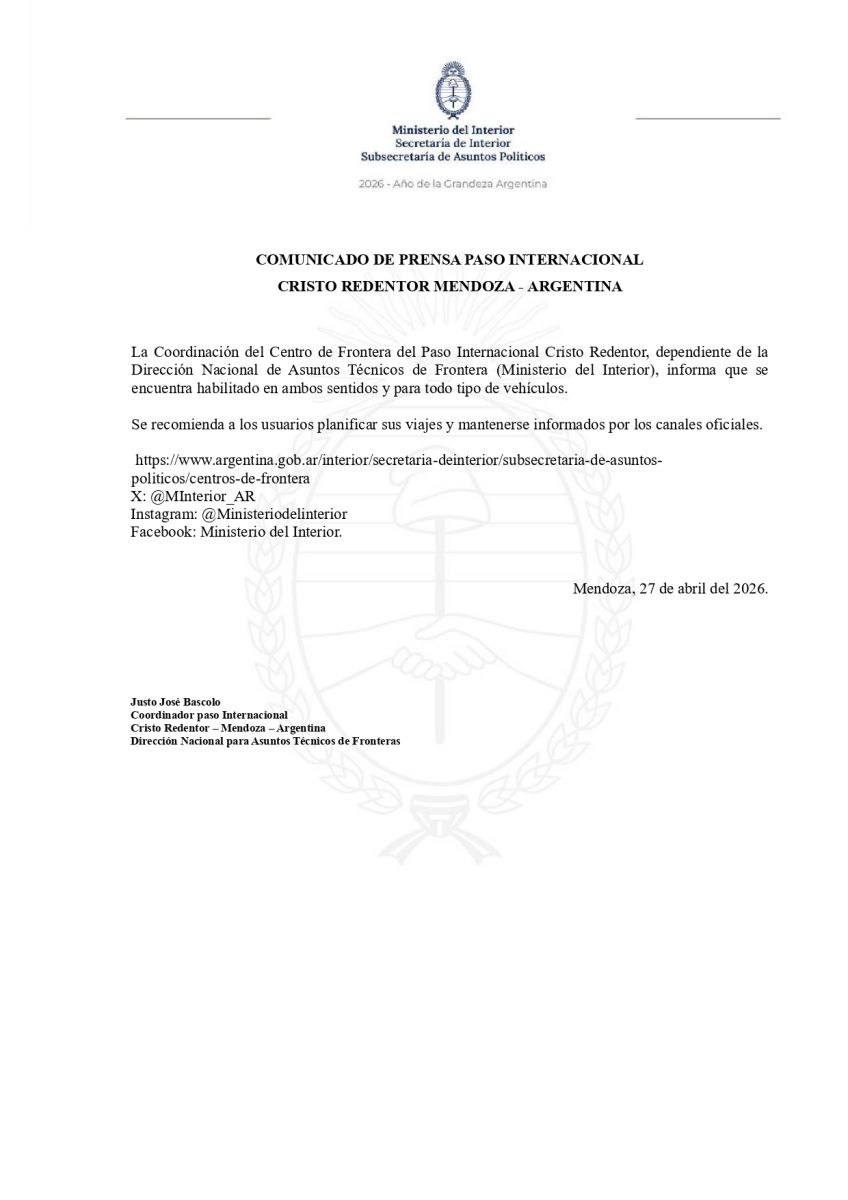 Paso Cristo Redentor: Habilitado para todo tipo de vehículos.