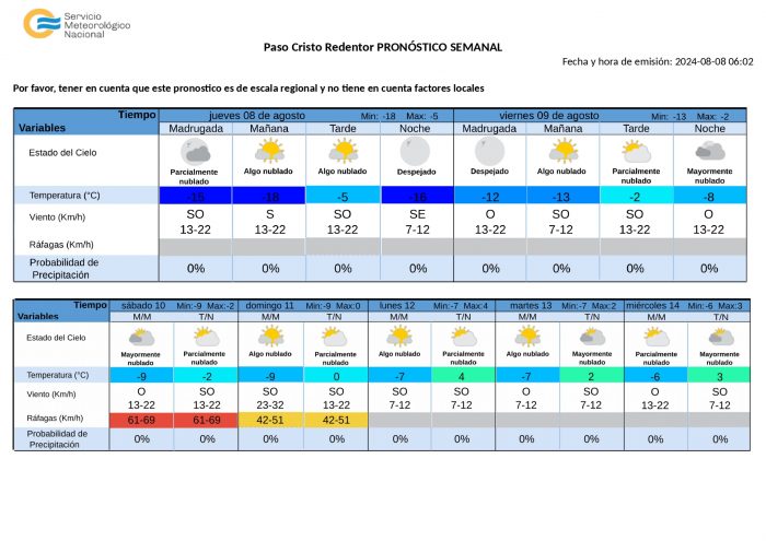 Alta Montaña: Primeramente despejado. Luego, a partir de las 14, aumento de nubosidad de sur a norte.