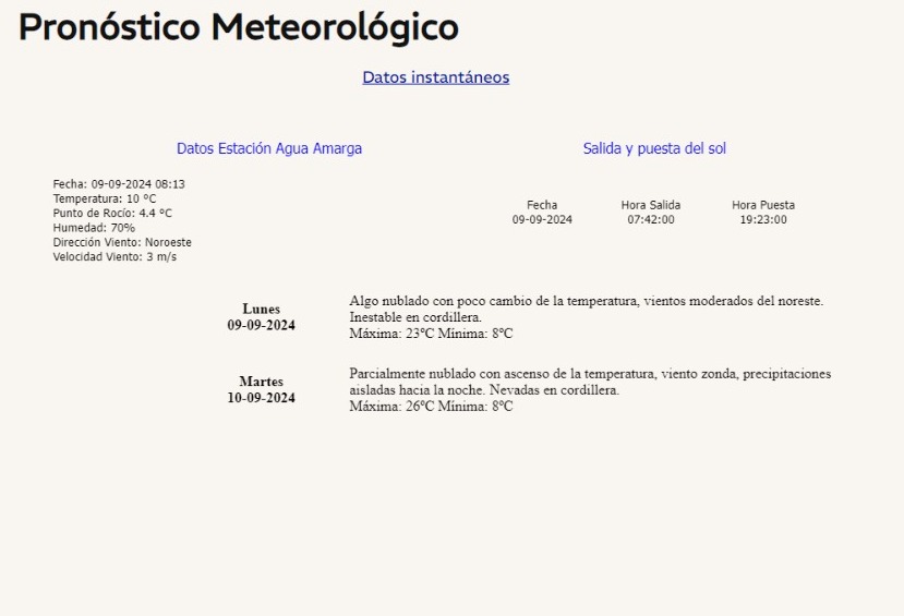 Alta Montaña: Cielo seminublado durante la mañana. A partir de las 15 comienza a inestabilizarse en el Valle de Uspallata. Luego se extiende hacia el sur de Malargüe, con precipitaciones en aumento desde la noche hasta la madrugada del martes.