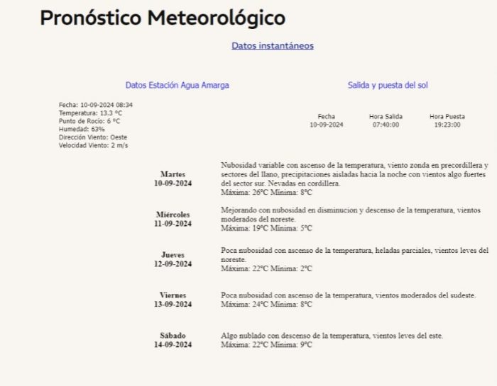 Relevamiento de situación meteorológica día 10/09/24 a las 06:30