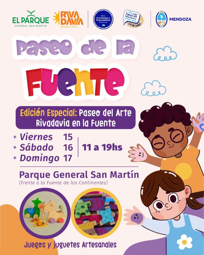 Del viernes 15 al domingo 17 de agosto, de 11 a 19, en el Parque General San Martín, frente a la Fuente de los Continentes, se podrá disfrutar de una amplia variedad de juegos y juguetes artesanales elaborados por emprendedores mendocinos. La propuesta contará con la participación especial del Paseo del Arte del departamento de Rivadavia.