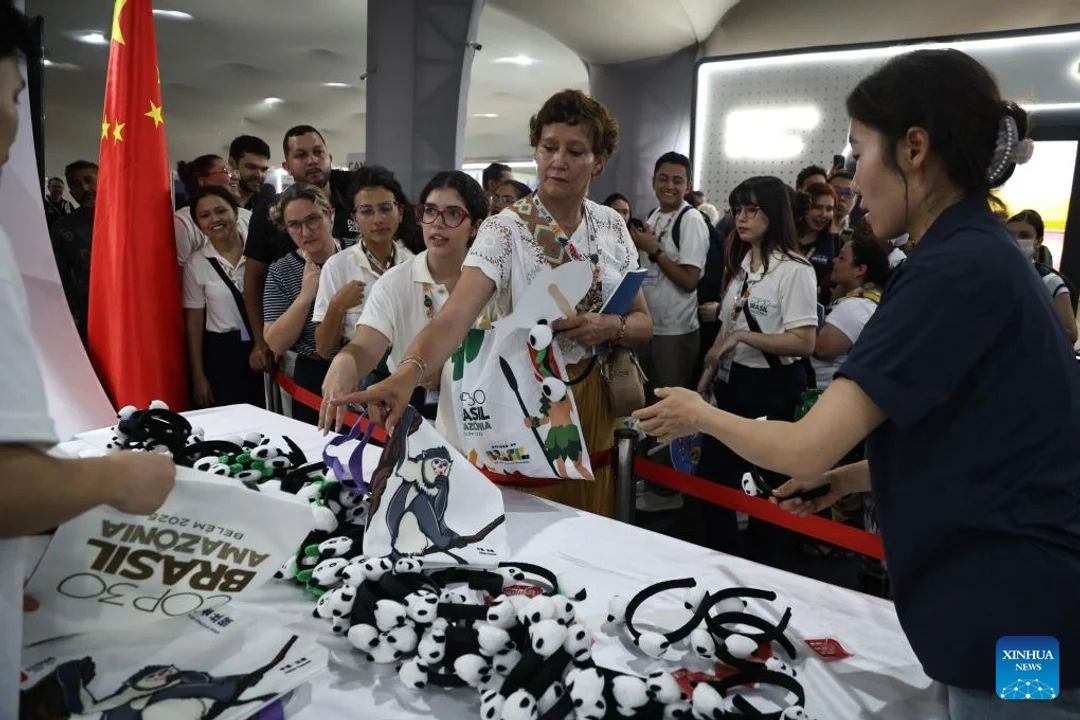 BELEM (Xinhua) En eventos paralelos de la 30ª Conferencia de las Partes (COP30) de la Convención Marco de las Naciones Unidas sobre el Cambio Climático, en Belém, Brasil, el Pabellón de China distribuyó obsequios a los participantes durante la primera sesión centrada en la civilización ecológica y la práctica de construir una «China Hermosa».