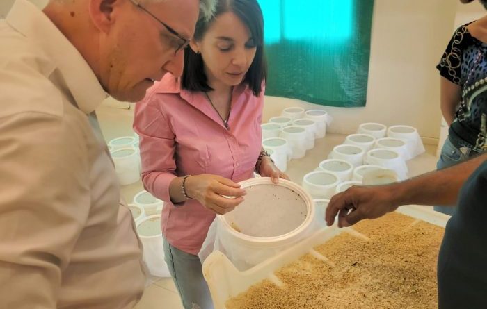 Los representantes del BID recorrieron las instalaciones, donde pudieron ver los procesos productivos de cría y desarrollo de insectos estériles. Pudieron ver alcances de esta técnica como herramienta de control, tanto para la mosca del Mediterráneo como su investigación y aplicación para otras plagas de una gran importancia económica, como también el potencial para el control de plagas que afectan a la salud humana.
