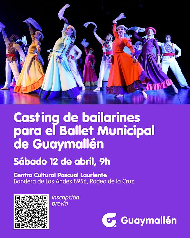 La Municipalidad convoca a amantes de la danza que quieran ser parte del elenco oficial del Ballet Municipal de Guaymallén, para el que se seleccionarán 7 bailarinas y 7 bailarines de 18 a 27 años de edad, que se encuentren actualmente en actividad.