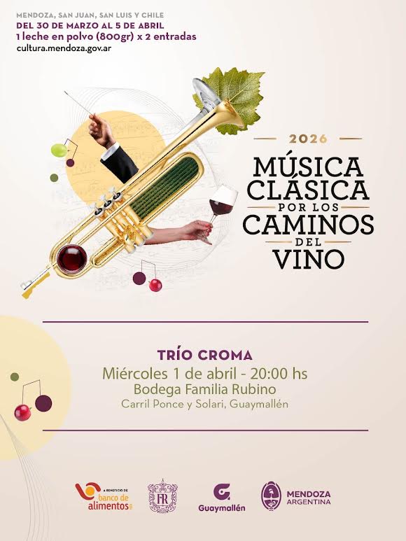 En el marco de la XXVI edición del festival Música Clásica por los Caminos del Vino, Guaymallén será uno de los escenarios protagonistas de esta tradicional propuesta cultural que se desarrollará en Mendoza durante Semana Santa.