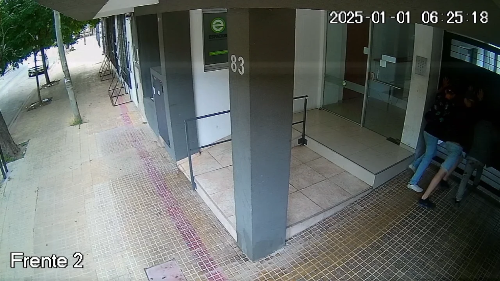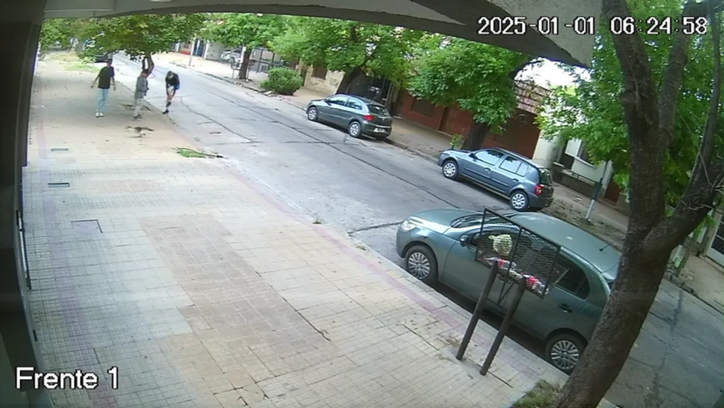 Uno de los individuos maltrató a un gato, tomándolo de la cola y lanzándolo violentamente al aire, mientras sus cómplices intentaban forzar portones en edificios cercanos.