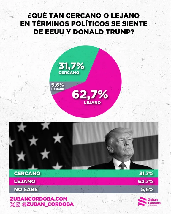 - Lejanía con Trump: Un 62,7% de los argentinos se siente «lejano» en términos políticos a Estados Unidos y a Donald Trump.