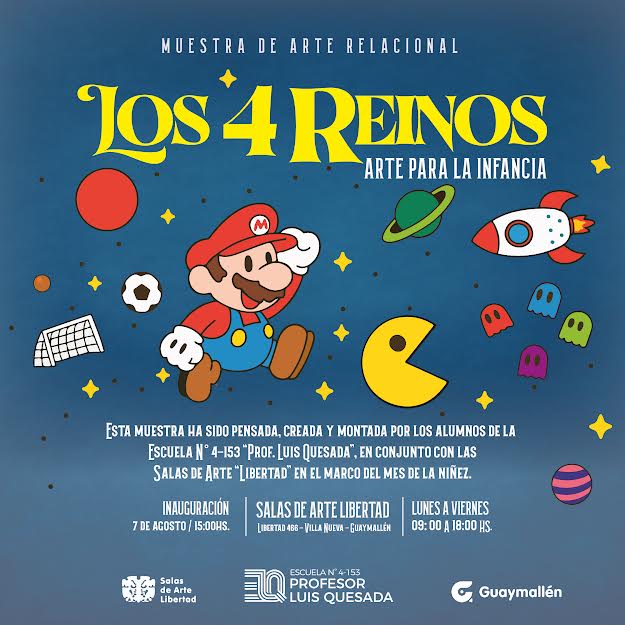 La Municipalidad de Guaymallén invita a participar de la inauguración de la muestra lúdica “Los 4 Reinos”, organizada por los estudiantes de 5º 1ª de la escuela artística nº 4-153 Profesor Luis Quesada. El encuentro será el próximo jueves 7 de agosto, a las 15h, en Salas de Arte Libertad, con entrada gratuita.