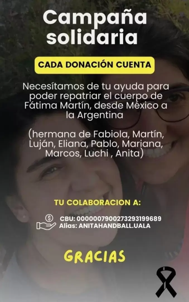A su vez, a través de redes sociales, la familia pidió la ayuda de la comunidad para repatriar el cuerpo desde México. “Cada donación cuenta”, escribieron. Quienes puedan colaborar, deben hacerlo al alias ANITAHANDBALL.UALA (Ana Carolina Martin).