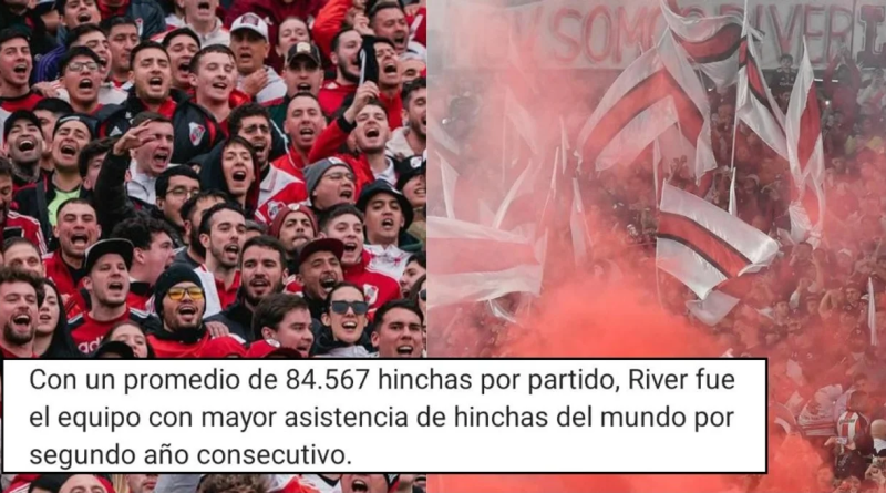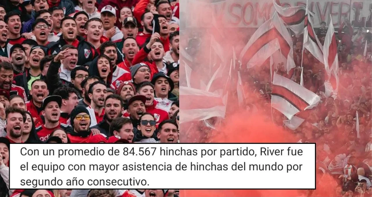 La institución deportiva de Núñez explicó que durante este año el promedio de asistencia fue de 84.567 fanáticos en las distintas competencias futbolísticas (locales e internacionales). “River fue el equipo con mayor asistencia de hinchas del mundo por segundo año consecutivo”, expresó la cuenta oficial de River Plate en el final de su mensaje de redes sociales.