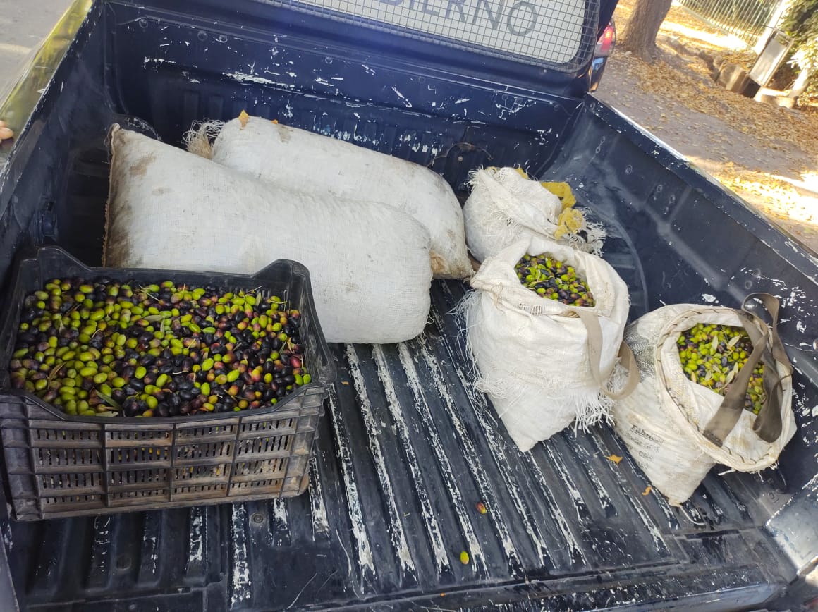 De manera inmediata, se organizó un operativo que culminó con la detención de los individuos y se confiscaron 120 kilogramos de aceitunas, distribuidos en dos bolsas de arpillera de 50 kg cada una, tres bolsas de arpillera cortadas por la mitad y un cajón de plástico. Además, se incautaron herramientas utilizadas en el robo, como un serrucho, una tijera, una pinza y una llave francesa, como también una mochila y una riñonera.