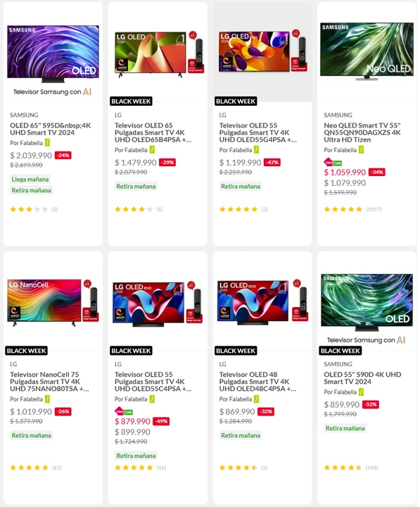 - Samsung OLED 65″ 4K UHD Smart TV 2024: $2.039.990 CLP → aprox. $1.555.000 ARS