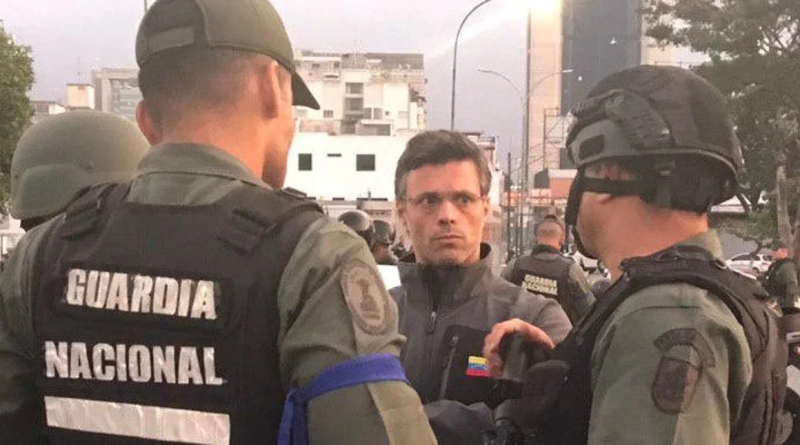 López, rodeado por la Guardia Nacional venezolana durante una protesta.