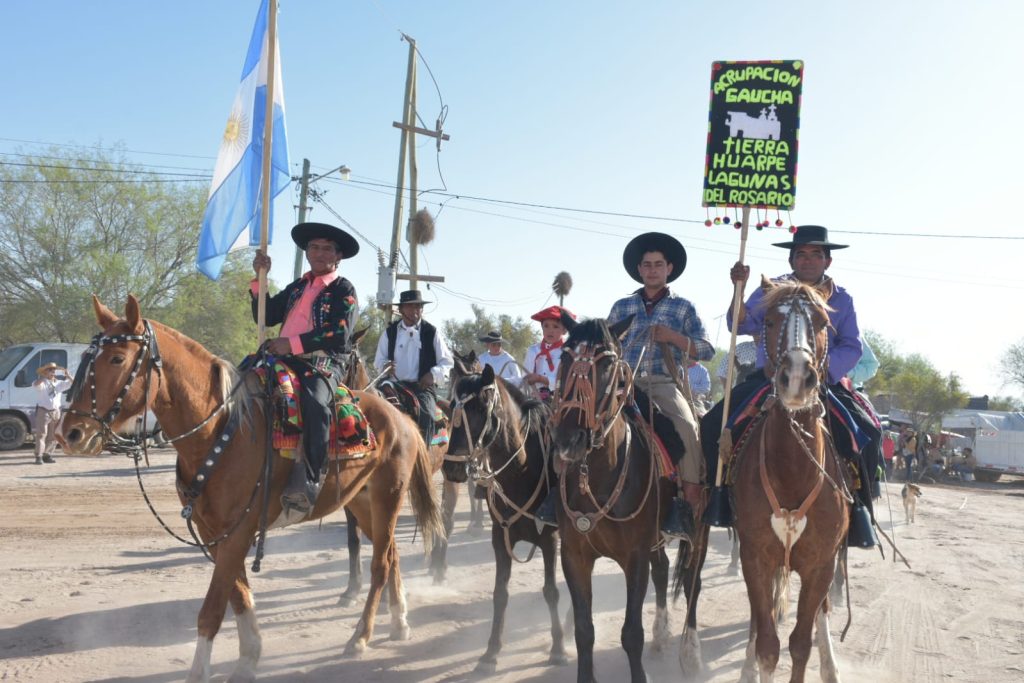 El domingo la jornada inició temprano con un espectáculo de destrezas Gauchas, una tradición que se sostiene en el tiempo y donde participan jinetes de diversos puntos de la provincia, además del colorido que aportan los bodegones que se ubican en los Bordos Negros.