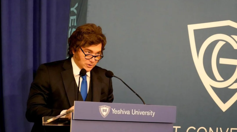 “Nos han metido dos bombas, una en la AMIA y otra en la Embajada de Israel. Por lo tanto, digamos, son nuestros enemigos. Además tengo una alianza estratégica con Estados Unidos e Israel», expresó Milei, en la frase más relevante de su exposición que contó la presentación del rabino Ari Berman, rector de la Universidad.