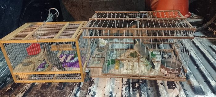 En otro recorrido preventivo, esta vez en calle Santa Cruz, barrio Tropero Sosa de Maipú, la misma unidad detectó dos jaulas colgadas de un árbol con aves de la especie siete cuchillos, protegidas por la Ley Nacional 22.421 de Conservación de la Fauna Silvestre.