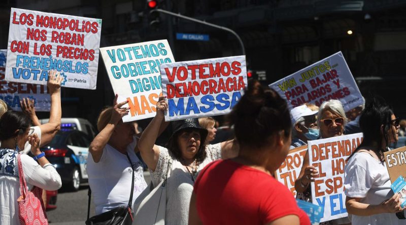 Con pasacalles, banderas, trompetas y carteles de cartón con las leyendas «Por la Argentina para todos, Massa Presidente», «Para los jubilados y para la Argentina, Massa presidente» y «Por una Argentina en unión nacional, Massa Presidente», los manifestantes expresaron su respaldo a Massa de cara al balotaje del próximo domingo.