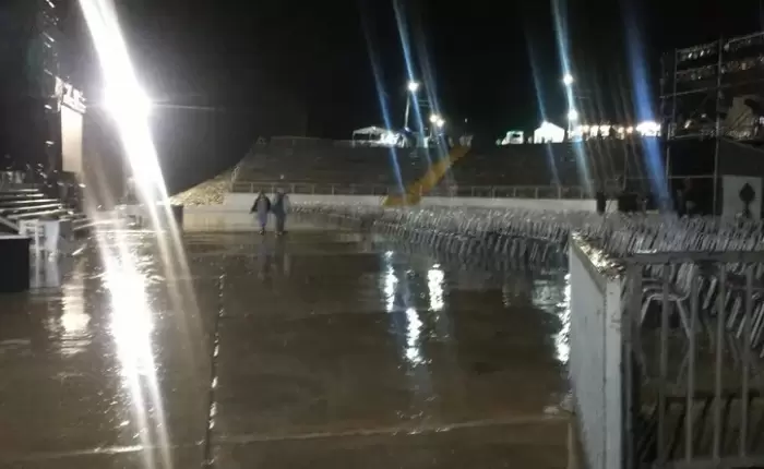 La decisión se tomó debido a la gran cantidad de agua caída sobre el predio, lo que hizo imposible llevar adelante el espectáculo con normalidad y garantizar la seguridad del público y de los artistas. Todo pasaría para el próximo domingo.