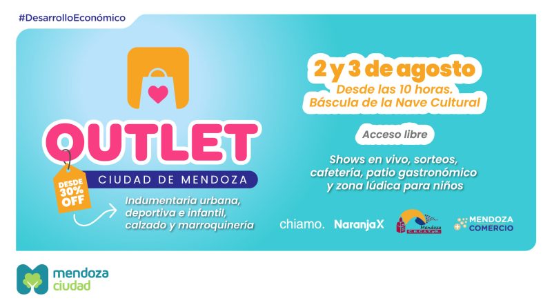 La primera edición del Outlet de la Ciudad de Mendoza llegará este fin de semana en el espacio La Báscula de la Nave Cultural, con la participación más de 20 comercios que ofrecerán sus productos a precios especiales, con descuentos de hasta el 50%, en el marco del cierre de temporada. El sábado 2 de agosto estará de 10 a 20, mientras que el domingo 3 será de 10 a 18.