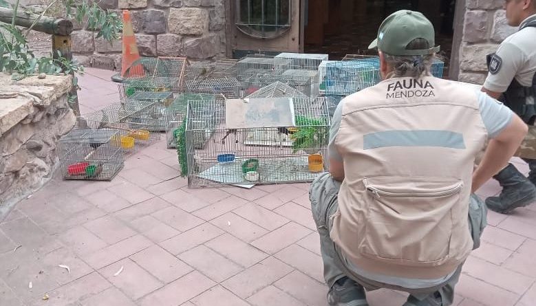 El operativo se concretó en una casa de la calle Dorrego de Las Heras, donde se encontraron 30 aves de distintas especies silvestres protegidas en condiciones de encierro para ser traficadas.