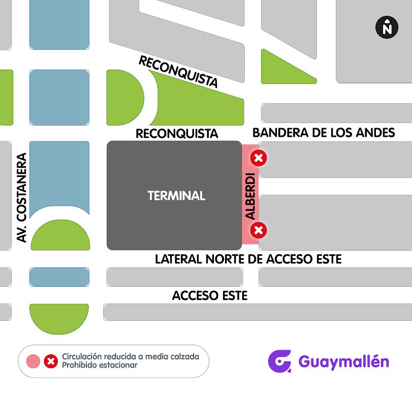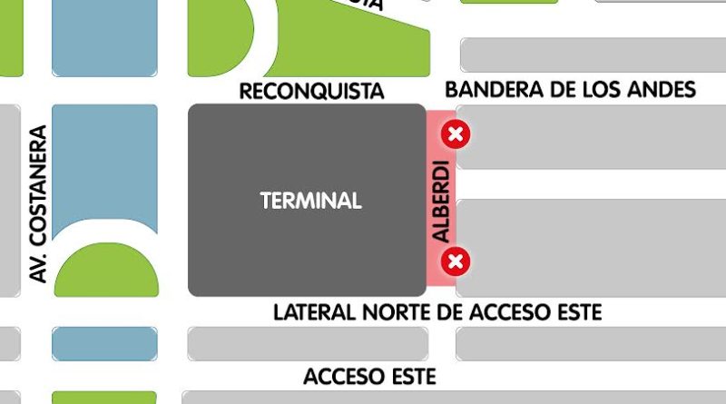 Se restringe a media calzada la circulación sobre calle Alberdi y se prohíbe el estacionamiento frente a la Terminal