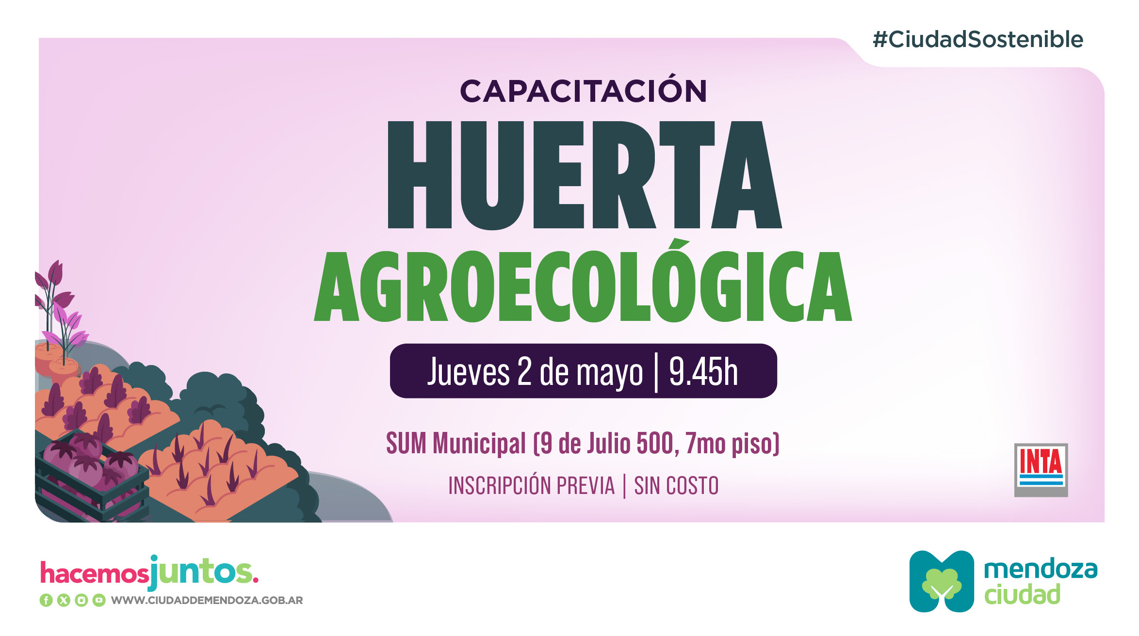 La Ciudad de Mendoza invita a la capacitación que se ofrecerá el jueves 2 de mayo a las 9.45h en el Salón de Usos Múltiples, ubicado en el 7° piso del edificio municipal. La misma será dictada por profesionales de INTA Mendoza, quienes informarán sobre cómo llevar a cabo huertas agroecológicas en la presente temporada otoño-invierno.