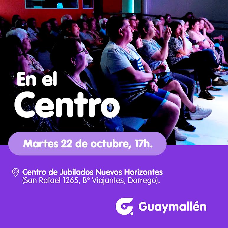 - Martes 22 de octubre, 17h: Centro de Jubilados Nuevos Horizontes (San Rafael 1265, Bº Viajantes, distrito Dorrego).
