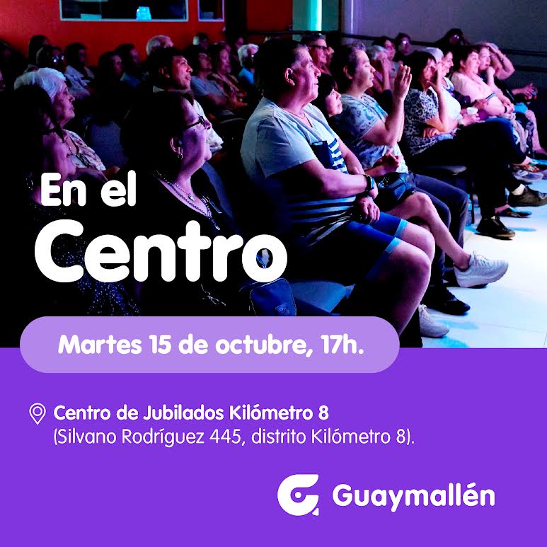 - Martes 15 de octubre, 17h: Centro de Jubilados Kilómetro 8 (Silvano Rodríguez 445, distrito Kilómetro 8).