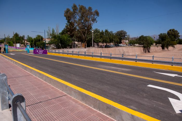 Este puente, que se construyó en tiempo record, está ubicado sobre el zanjón Frías, en la intersección de Juncal y Santiago del Estero, y vincula al departamento de Godoy Cruz con Capital, a la altura de la primera rotonda de San Francisco de Asís, una importante arteria del Parque General San Martín.